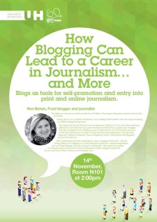 The School of Humanities was visited by food blogger Ren Behan who led a talk on “How Blogging Can Lead to a Career in Journalism.” Ren’s blog is called ‘Fabulicious Food’ and can be found online at www.renbehan.comAfter studying to be a lawyer, Ren took a career change after becoming a mother of two. She headed to the kitchen and started her own blog featuring recipes inspired by her Polish heritage. Blogging has opened a variety of doors for Ren, who has also taken to photography, journalism, and recipe development.