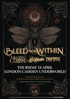The Underworld in Camden was packed full of eager metal fans, awaiting a line-up promising a night full of raucous debauchery. Scottish headliners Bleed From Within returned with their first UK tour in four years. They recently released the album ‘Uprising’ which has built these rising stars a remarkable reputation, evident from the impressive turnout.